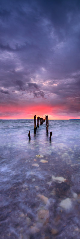 It's extremely rare that I capture something special on my first shoot at any given location but this was one of those amazing mornings. While running a group photography workshop at Kangaroo Island we stayed in the quaint town of Kingscote. These old jetty pylons are quite close to town and face east so I determined them to be an excellent location for a sunrise shoot.